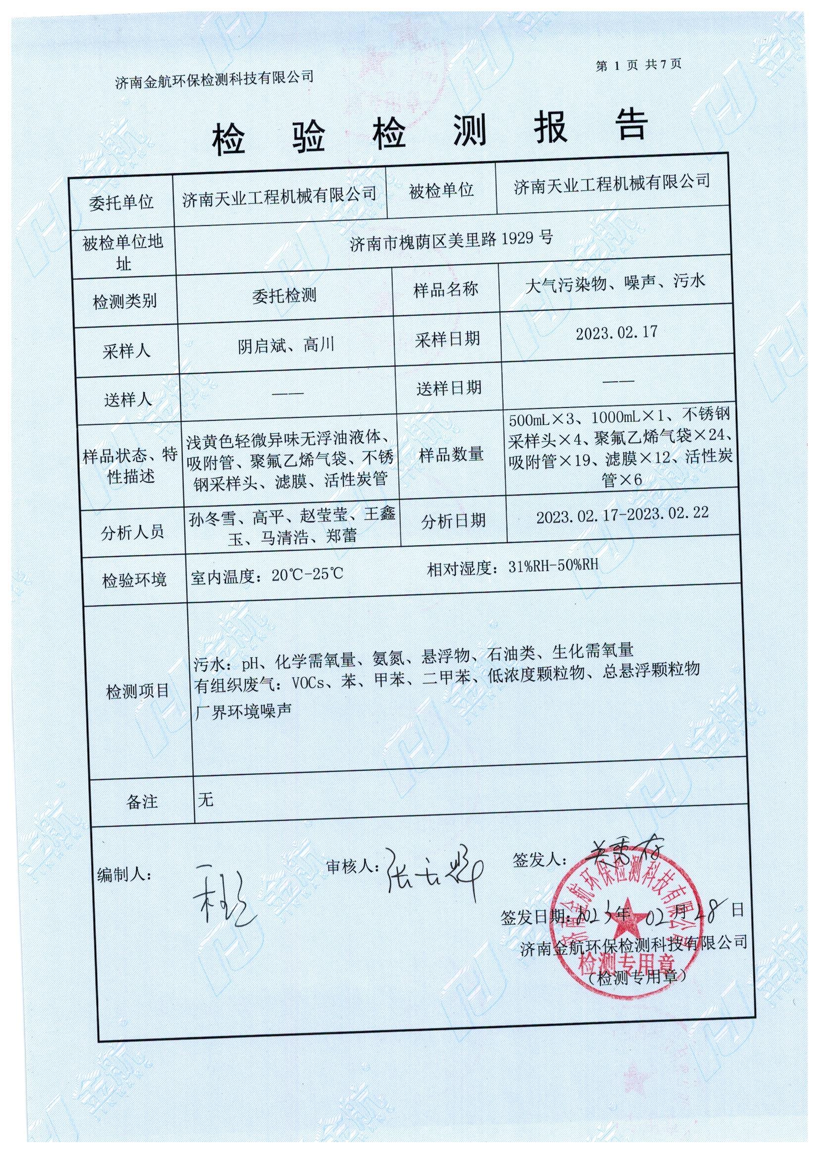 • 济南天业工程机器无限公司查验检测报告公示